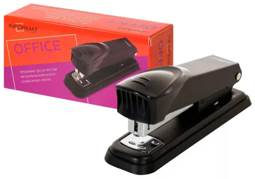 Степлер INFORMAT Office имеет металлический механизм и металлический корпус с пластиковой вставкой для удобства в использовании.