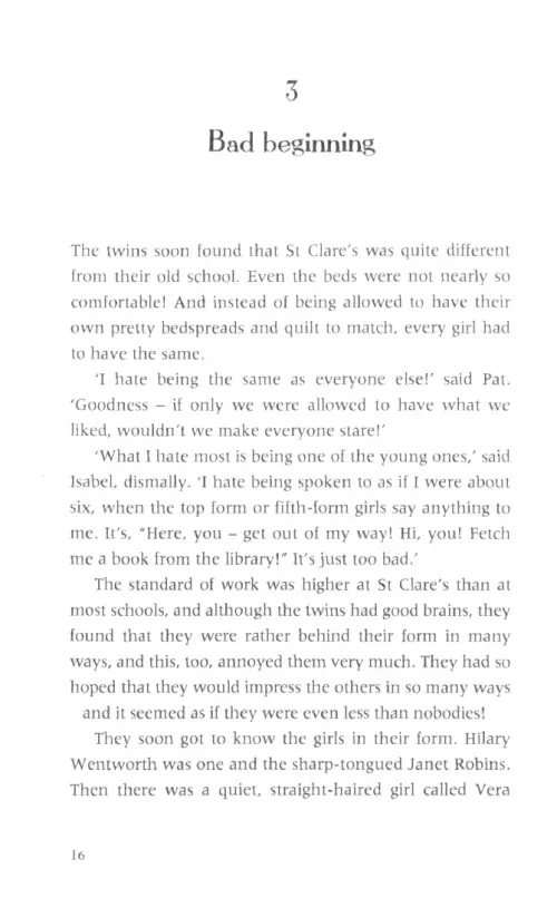 Pat and Isabel find life at St Clare's is not as easy as they thought. They have several surprises and arguments before they admit their troubles are of their own making, and settle down to make friends.