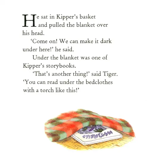 Where's the best place to try out the most powerful torch there is? Kipper and Tiger decide that it must be in the middle of the woods at the bottom of Big Hill. But just what is that big animal with horns that they can see on the other side of the tent? Perhaps it would be safer to camp in Tiger's room . . .