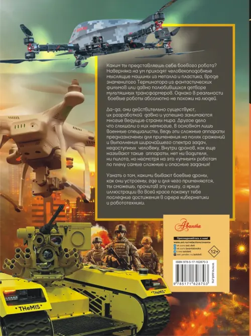 Эта книга расскажет тебе о самых современных боевых роботах на примере лучших моделей из разных стран, находящихся сейчас на вооружении многих армий и ежедневно выполняющих свои нелегкие миссии. Прочитав ее, ты узнаешь, что такое разведывательные и ударные беспилотники, какими бывают специальные и бронированные роботы, для чего и как они применяются, а яркие иллюстрации с описанием их особенностей и элементов конструкции помогут разобраться в их устройстве. Изучай, анализируй, сравнивай, и, возможно, совсем скоро ты тоже сможешь приобщиться к удивительному миру роботов в качестве их создателя или оператора. Ведь сегодня уже никто не сомневается, что будущее принадлежит высокотехнологичным «умным» машинам, которые умеют абсолютно всё — и даже немного больше!