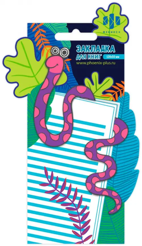 Закладка для книг фигурная арт. 65145 / 160 ЗМЕЯ (1 шт. в наборе, размер 74х120 мм, материал: мелованный картон; цвет: розовый, сиреневый, фиолетовый, декор: матовая ламинация, полноцветный дизайн, фигурная вырубка, индивидуальная упаковка: подложка из мелованного картона + ПЭТ-пакет с европодвесом)