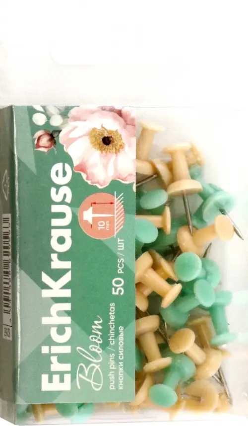 Кнопки силовые ErichKrause Pastel Bloom, ассорти (в пэт-боксе по 50 шт.)