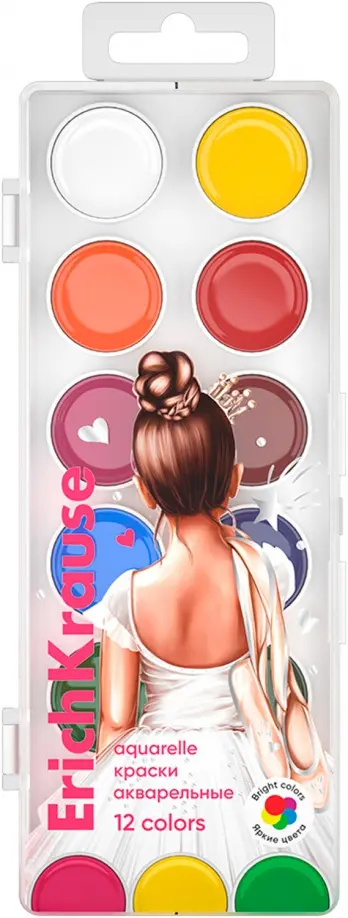 Акварельные краски ErichKrause – оптимальный выбор для школьного рюкзака. Новая уникальная формула акварели позволяет краске значительно легче разводиться водой, хорошо удерживаться кистью и равномерно ложиться на бумагу, создавая мягкие переходы цвета. По мере высыхания акварельный рисунок приобретает матовый насыщенный оттенок без посторонних бликов и затеков. Краска наиболее точно передает игру цвета и света на рисунке, создает цветовые комбинации. Для работы с акварелью лучший эффект достигается при использовании акварельной бумаги ErichKrause.