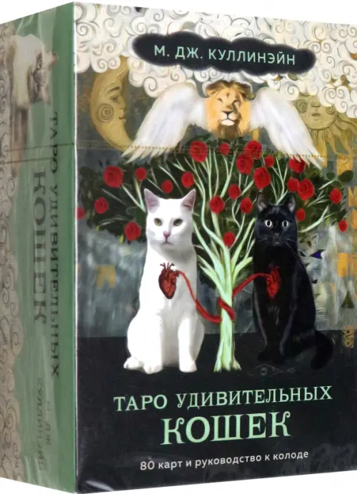 «Таро удивительных кошек» М.Дж. Куллинэйн — 100% кошачья колода. Она рассказывает о самых разных кошках: от бродячих попрошаек до упитанных толстяков, от безволосых сфинксов до пушистых гигантов. На каждой карте этого Таро, созданного в традиции классического Таро Уэйта, хорошие, плохие, грациозные и неуклюжие кошки совершают свое собственное «Путешествие Шута» — и делятся с нами, кожаными двуногими, своими открытиями.