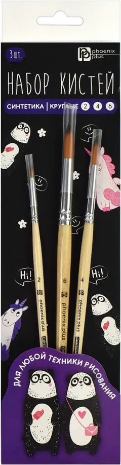 Набор художественных кистей Арт-братва, 3 штуки, нейлон, круглые