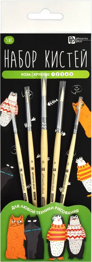 Набор художественных кистей Арт-братва, 5 штук, коза, круглые