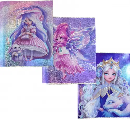 Обложки для тетрадей с голографическим рисунком Принцессы, 3 штуки