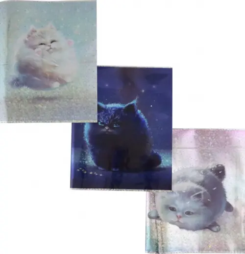 Обложки для тетрадей с голографическим рисунком Коты, 3 штуки