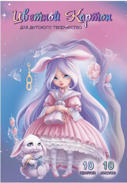 Цветной картон арт. 66783 АЛИСА /А4, папка с клапанами, 10 л, обложка - полноцветная печать, мелованный картон с серым оборотом 230 г/м?, блок - мелованный картон с белым оборотом, 200 г/м?, 10 цветов, односторонняя печать /