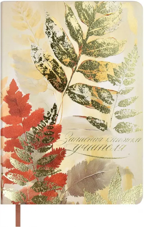 Записная книга учителя, преподавателя, А5, 120 л., арт. 66478/ 15 ЛИСТЬЯ (кожзам: 146x211 мм, мягкий переплёт, материал обложки: искусственная кожа "Наппа", способ крепления блока: ниткошвейный, декор: полноцветная печать, тиснение фольгой, вн. блок: 120 л., белый офсет 70 г/м?, печать в две краски (линия), справочный материал: нет, отделка среза: фольгирование, закладка/-и: одно ляссе, форзац: печать пантоном, инд. упаковка: промостикер + ПЭТ-пакет)