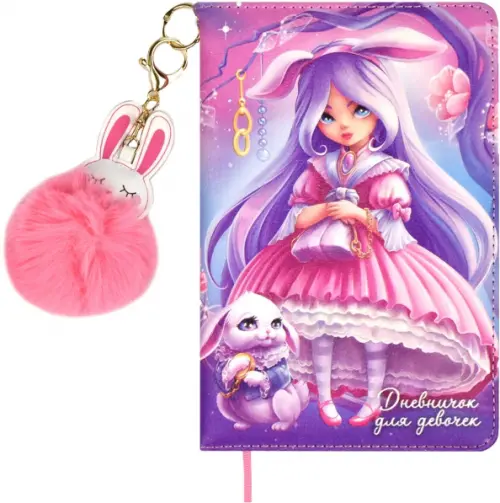 Дневничок для девочек ПРИНЦЕССЫ, А6+, 96 л., арт. 66496/ 20 АЛИСА (кожзам: 126x195 мм, твёрдый переплёт с поролоном, материал обложки: искусственная кожа "Наппа", способ крепления блока: ниткошвейный, декор: полноцветная печать, вн. блок: 96 л., белый офсет 70 г/м2, печать в одну краску (линия), справочный материал: нет, закладка/-и: одно ляссе, форзац: печать в одну краску, особенности: брелок из искусственного меха в комплекте, инд. упаковка: ПЭТ-пакет)