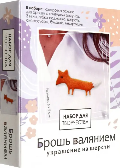 В наборе: окрашенная 100% овечья, Фетр с нанесённым контуром рисунка, иглы для валяния