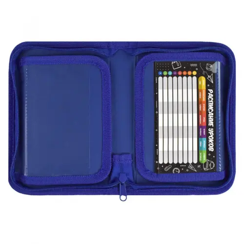 Особенности: прозрачные карманы на откидных планках, с двумя откидными планками, таблица для заполнения расписания уроков