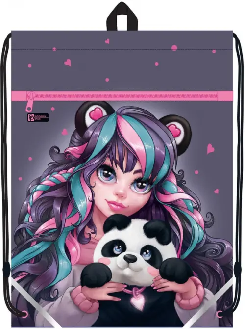 Мешок для сменной обуви Феникс+, арт.65721/ 24 ДЕВУШКА С ПАНДОЙ (36x48 см, полиэстер, сублимационная печать, 1 отделений (-я), шнурок, ПЭТ-пакет)