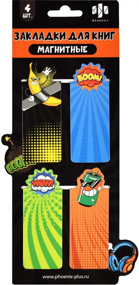 Набор закладок магнитных для книг арт. 65049/К / 100 СТРИТ-АРТ (4 шт. в наборе, размер 30x60 мм, материал: ПВХ, ферроагломерированный полимер; цвет: зелёный, оранжевый, синий, чёрный, декор: полноцветный дизайн, фигурная вырубка, особенности: глянцевая ламинация, индивидуальная упаковка: подложка с европодвесом из мелованного картона + ПЭТ-пакет)