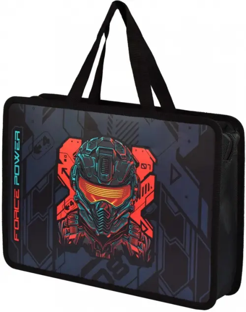 Папка для школьных тетрадей пластиковая Феникс+, арт. 66307/ 12 КИБЕР (полипропилен, формат А4, 34х25х9.5 см, 1 отделение (-я), молния, дно с расширением, текстильные ручки, УФ-печать)