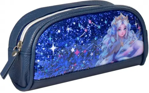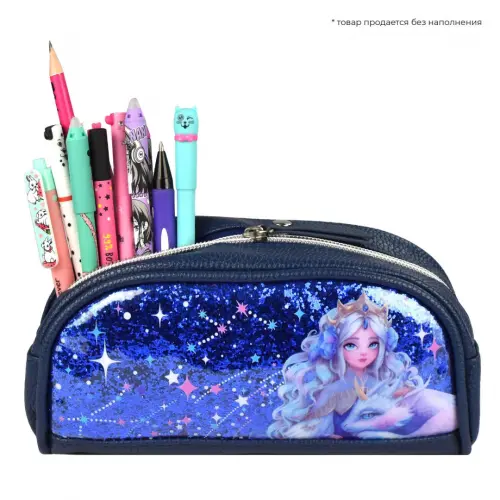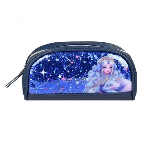 Пенал школьный Феникс+, арт.64176/ 24 ПРИНЦЕССА С ДРАКОНОМ (без наполнения, 20х9.5х7.5 см, искусственная кожа, молния, глиттерный ПВХ, сублимационная печать, ПЭТ-пакет).