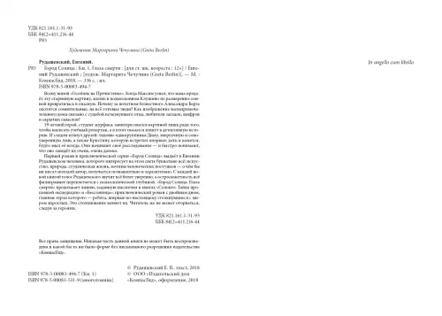 Первый роман в приключенческой серии "Город Солнца" выдаёт в Евгении Рудашевском человека, которого интересует на этом свете буквально всё: искусство, природа, студенческая жизнь, мотивы человеческих поступков - о чём бы ни писал молодой автор, получается познавательно и заразительно. С каждой новой книгой голос Рудашевского звучит всё более уверенно, а остросюжетность всё филиграннее переплетается с психологической глубиной. "Город Солнца. Глаза смерти" продолжает линию, заданную писателем в книгах "Солонго. Тайна пропавшей экспедиции" и "Бессонница": приключенческий роман с двойным дном, главные герои которого - ребята, впервые по-настоящему столкнувшиеся с миром взрослых. Это столкновение меняет их. Читатель же не может оторваться, следуя за героями.