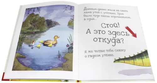 Эта интерактивная книга начинает играть с читателем с первой же страницы: оказывается, что в сказку про гадкого утенка вдруг ни с того ни с сего пробрался… огромный крокодил! Крокодил безобразничает, рвёт страницы и глотает буквы - и читателю предстоит помочь утёнку справиться с этим хулиганом. Не так уж просто выбраться из книжки тому, что уже попал в неё, но крокодил находит удивительный способ!