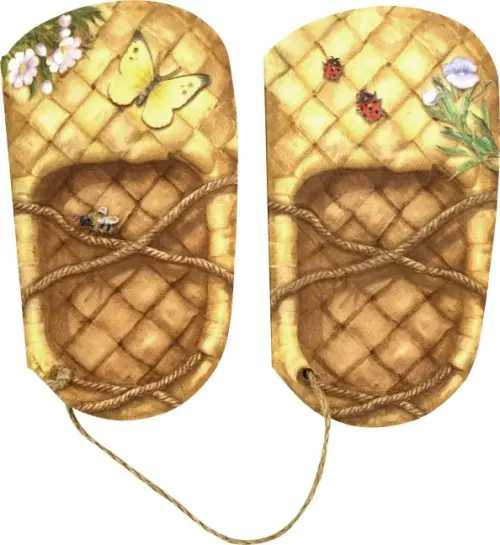 Книжка в форме пары хорошеньких плетёных лапоточков! Внутри каждого собраны короткие весёлые детские стихи и народные потешки с иллюстрациями Милы Коммунар. На прочных картонных страничках резвятся зайчики и котята, красавица-лиса плетёт лапти, нарядные дети пляшут и поют.