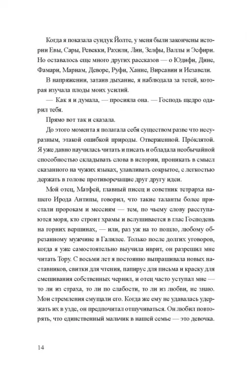 Древняя Галилея, начало нашей эры. Юная Ана, непокорная дочь советника тетрарха, втайне от отца записывает рассказанные тетушкой истории судеб иудейских женщин. Девочку восхищает их смелость, она полна решимости найти свой голос. Сердце Аны разрывается от тайных желаний, которые обретают суть и смысл, когда она встречает плотника и каменщика Иисуса и решает навсегда связать с ним свою судьбу.