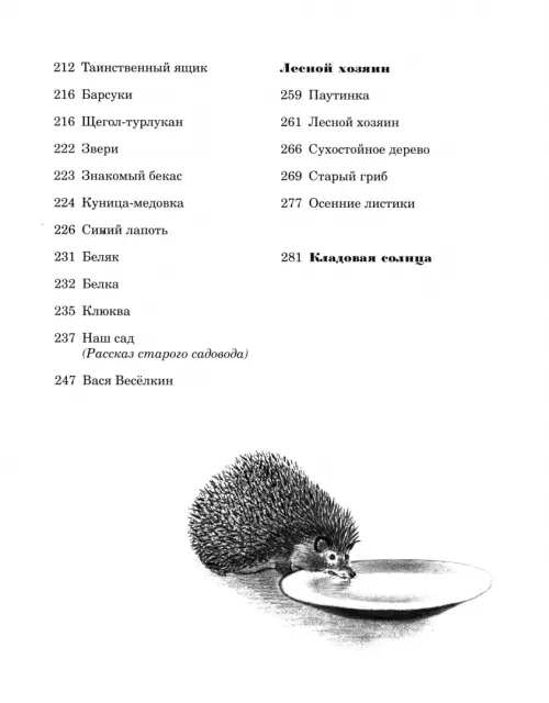 Пугается шуршания листьев пробудившийся от зимней спячки ёжик - и замирает под толстым слоем листвы. Пытается отвлечь и увести охотничью собаку от своих птенцов мама-куропатка - и пёс поддаётся на её уловку. Как чаша, наполняется росой шляпка старого гриба - и к живительной влаге слетаются птицы, не брезгует ею даже человек… Михаил Пришвин всегда видел природу словно сквозь увеличительное стекло - и она открывала ему свои сокровенные тайны. В русской литературе не было, по словам Максима Горького, "такого природолюба, такого проницательного знатока природы и чистейшего поэта". А в лице художника Евгения Рачёва Пришвин нашёл не просто равного эксперта, но и единомышленника - способного воспринять и донести до читателя неторопливую и гармоничную жизнь русского леса.