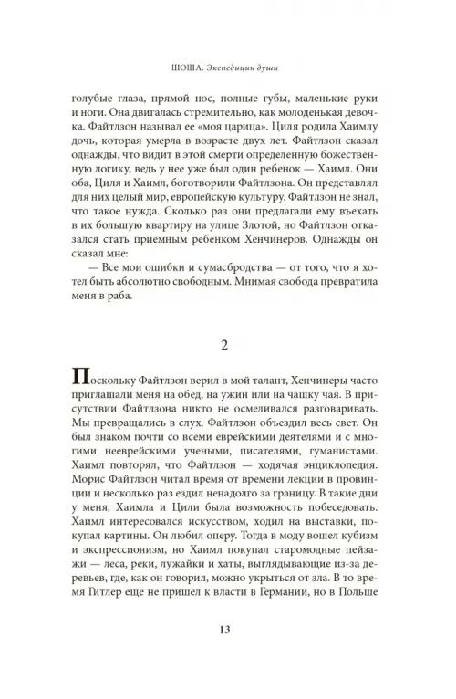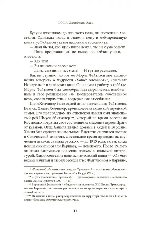 Исаак Башевис Зингер - один из редких писателей, большинство произведений которого существуют сразу в двух вариантах: в оригинале и в переводе, который порой заметно отличается от изначального текста. В 1974 г. на идише был опубликован роман Зингера "Экспедиции души". Через четыре года вышла английская версия романа с простым и запоминающимся названием "Шоша". Именно она знакома читателям во всем мире. Перед вами - перевод, впервые сделанный с оригинального издания на идише.