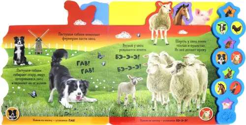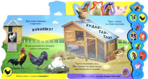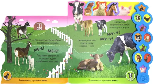 Мы на ферме. Давай познакомимся с ее обитателями! Кто тут хрюкает? А у кого такие длинные ушки? Нажимай на кнопочки, слушай и узнавай голоса животных!