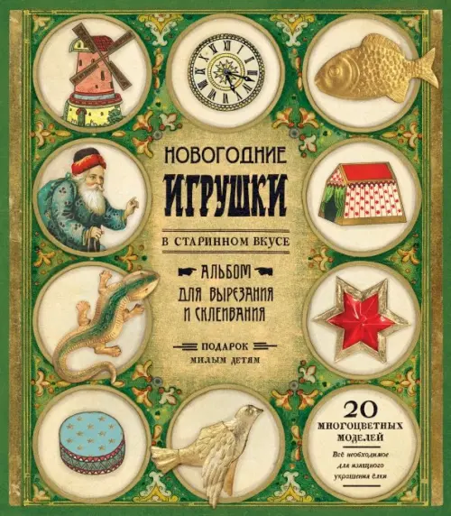 Изысканный новогодний альбом для вырезания и склеивания ёлочных игрушек - таких, какими украшали ёлки в начале прошлого века.