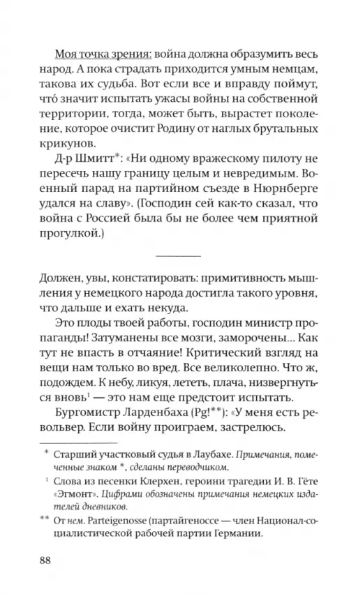 Фридрих Кельнер, один из немецких чиновников-антифашистов, с 1939 по 1945 год почти ежедневно документировал преступления режима. Его целью было оставить свидетельства бессмысленной покорности немцев и оболванивающего воздействия нацистской пропаганды. Сочетание вырезок из газет и комментариев к ним превратили дневник Кельнера в важнейший исторический документ, в "изображение нацистской Германии, которого никогда прежде не существовало в такой яркой краткой и впечатляющей форме" ("Der Spiegel").