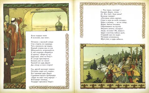 "Сказка о золотом петушке" с иллюстрациями Бориса Васильевича Зворыкина впервые вышла в свет в 1903 году. Это время - начало XX века - период расцвета книжной графики и формирования "русского стиля" в искусстве, одним из основоположников которого, наряду с И. Я. Билибиным, стал Б. В. Зворыкин. Древнерусские рукописные книги вдохновили художника на создание выразительных иллюстраций, затейливых орнаментов, заставок и буквиц. Уже эта ранняя работа Б. В. Зворыкина - настоящее произведение книжного искусства, передающее дух той сказочной Руси, которую так ярко описал А. С. Пушкин.