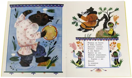Здесь зайка в сафьяновых сапожках бежит в огород, чтобы полакомиться капустой, медведь на болоте в бубен колотит, а радуга может унести на бирюзовую речку, где травка, песок и так много интересного…