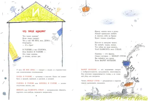 Новая книга замечательного писателя Андрея Усачева весело и толково объясняет значения крылатых слов и выражений. Всем известные и широко распространенные обороты речи становятся крылатыми, потому что быстро перелетают "из уст в уста". Смысл такого выражения бывает не просто разгадать, так как он не складывается из значений входящих в него слов. Автор дает нам ключ к тайне смысла "между строк", ключик к загадкам и смысловым головоломкам образного русского языка. Словесную игру и юмор прекрасно поддерживает художник, предлагая неожиданные, смешные и запоминающиеся образы. Веселые и озорные стихи и рисунки помогают хорошо понимать крылатые слова и просто использовать их в речи.