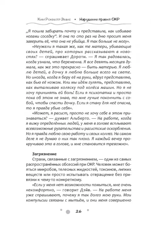«Вашей жизнью управляет обсессивно-компульсивное расстройство? Если да, то знайте: вы не одиноки. И вы сможете освободиться от его удушающей власти, научившись нарушать правила, которые вам диктует ОКР. Вы можете жить свободно и заниматься тем, чем хочется вам самим, — а не тем, чего от вас требует ваше расстройство».
