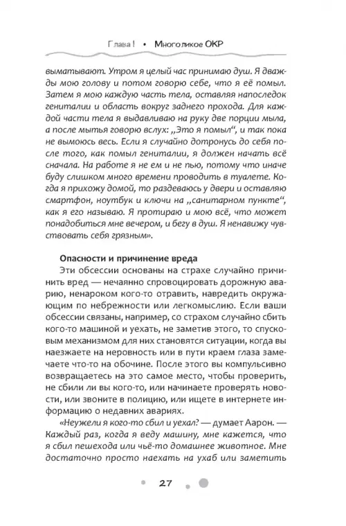 Книга, которую вы держите в руках, — это руководство, призванное помочь вам жить свободной и полноценной жизнью без ОКР (обсессивно-компульсивного расстройства). Приведенные в ней методики объединяют в себе техники экспозиционной терапии с подавлением реакции, терапии принятия и ответственности, а также осознанности и сострадания, эффективность которых была доказана в ходе клинических исследований. На этих страницах вы найдете полезную информацию и множество примеров из практики и рекомендаций, касающихся того, как применить эти методики — и освободиться от правил ОКР, которые мешают вам жить. Особенно стоит отметить сравнение автором своей методики с техникой айкидо, в которой противник рассматривается как учитель, а его энергию вы обращаете себе на пользу.