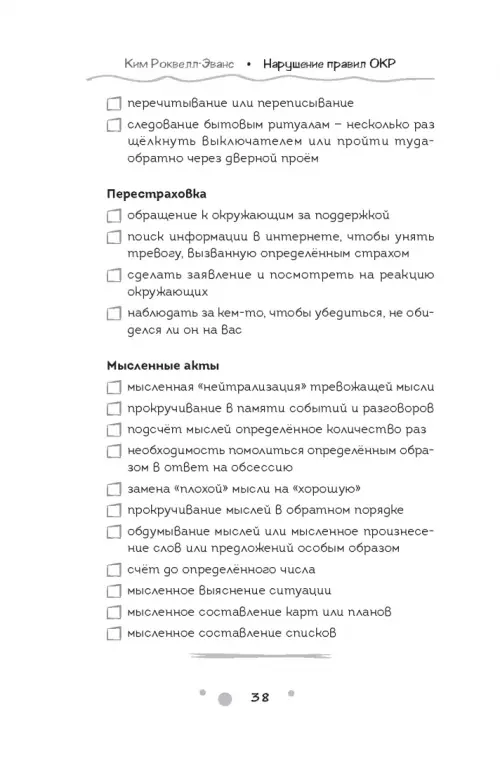 Если вы обнаружили ошибку в описании товара «Нарушение правил ОКР. Освобождение от нежелательных мыслей, ритуалов и принуждений» (авторы: Роквелл-Эванс Ким), то выделите её мышкой и нажмите Ctrl+Enter. Спасибо, что помогаете нам стать лучше!