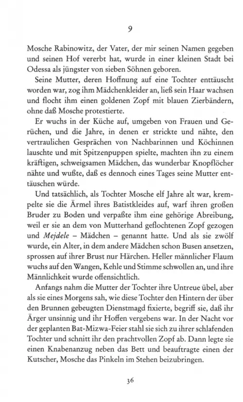 Manche Kinder haben eine Mutter und keinen Vater. Der zwölfjährige Sejde, der in einem kleinen Dorf in der Jesreel-Ebene lebt, aber hat eine Mutter – und drei Väter. Jeder der Väter, die ihr Leben lang auf verschiedenste Arten um Sejdes eigenwillige Mutter Judith geworben haben, vermittelt dem Kind, was er kann: Mosche Rabinowitz, auf dessen Hof Judith als Haushälterin arbeitet, gibt Sejde ein Zuhause und zwei Halbgeschwister; von Globermann, dem ungehobelten Viehhändler, dem Frauenheld und Zechbruder, bekommt Sejde ab und zu einen Geldschein zugesteckt und jede Menge bodenständiger Lebensweisheiten; Jakob Scheinfeld, der poetische Sonderling, erzählt Sejde alles, was er über Vögel weiß, und lehrt ihn das Kochen. Zu jedem großen Lebensabschnitt in Sejdes Leben bereitet Jakob ein mehrgängiges Menü für Sejde, das er auf feinstem Geschirr serviert, und natürlich gibt es dazu etwas aus dem großen Sack voller Geschichten um Sejdes Mutter, die Jakob angesammelt hat. Geschichten so voller Phantasie und Poesie, wie sie nur Meir Shalev zu erzählen versteht.