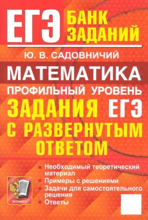 Если вы обнаружили ошибку в описании товара «ЕГЭ. Математика. Профильный уровень. Задания с развернутым ответом» (авторы: Садовничий Юрий Викторович), то выделите её мышкой и нажмите Ctrl+Enter. Спасибо, что помогаете нам стать лучше!