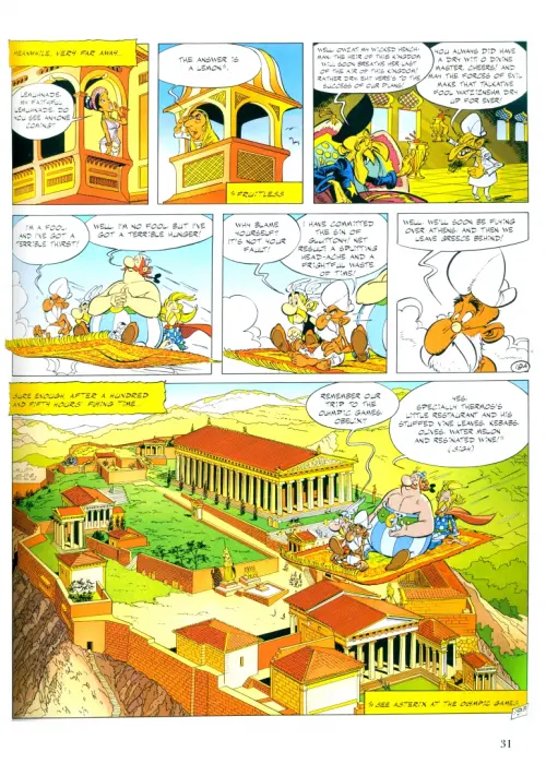 In Asterix and the Magic Carpet, Cacofonix's awful singing voice comes to the rescue of the lovely Princess Orinjade, who is about to be sacrificed by the guru Hoodunnit.
