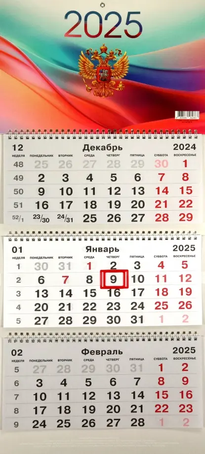 Классический квартальный календарь на 2025 год Эксмо - неизменный атрибут любого офиса, предприятия и дома, который позволяет вести учет рабочего времени, рассчитывать дни отпуска, а также планировать и реализовывать различные цели и бизнес-задачи. Календарь большого размера (305мм*680мм), состоит из трех блоков на евроспиралях, каждый блок — это отдельный месяц, который позволяет без перелистывания видеть даты предыдущего и будущего месяца и вести среднесрочное планирование в рамках квартала (3 месяца). Яркий указатель - бегунок не даст потеряться важным датам, а металлическое крепление в верхней части календаря - пикколо облегчает крепление к стене и защищает само отверстие от повреждений. Календарь поставляется в индивидуальной упаковке.