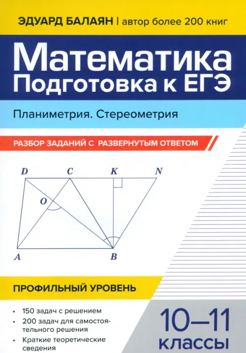 Если вы обнаружили ошибку в описании товара «Математика. Подготовка к ЕГЭ. Планиметрия. Стереометрия. 10-11 классы. Профильный уровень. Разбор заданий с развернутым ответом» (авторы: Балаян Эдуард Николаевич), то выделите её мышкой и нажмите Ctrl+Enter. Спасибо, что помогаете нам стать лучше!