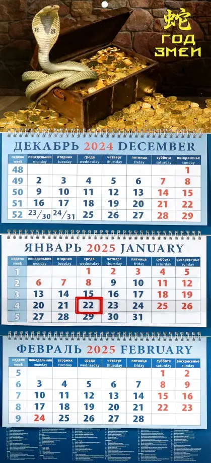 Календарь квартальный на 2025 год Год змеи