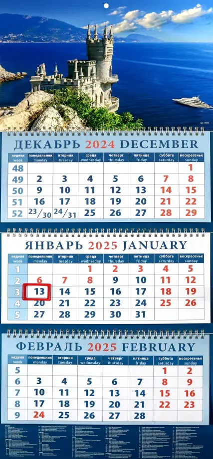 Если вы обнаружили ошибку в описании товара «Календарь квартальный на 2025 год Крымский пейзаж с замком», то выделите её мышкой и нажмите Ctrl+Enter. Спасибо, что помогаете нам стать лучше!