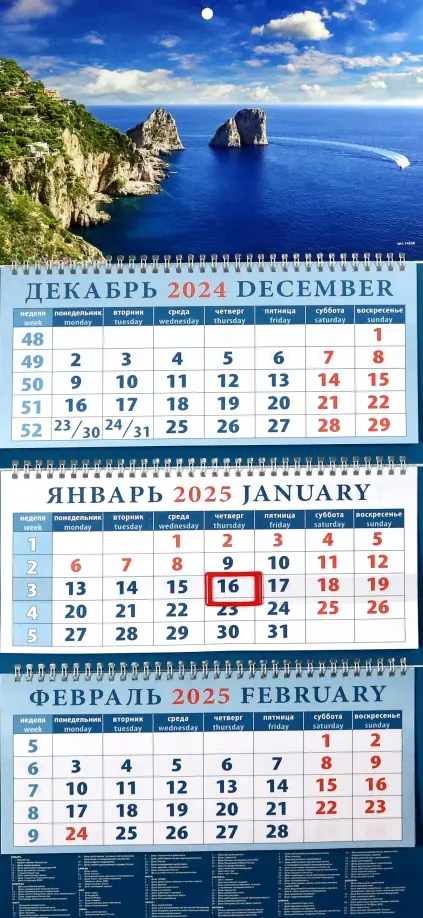 Если вы обнаружили ошибку в описании товара «Календарь квартальный на 2025 год Морской вид», то выделите её мышкой и нажмите Ctrl+Enter. Спасибо, что помогаете нам стать лучше!
