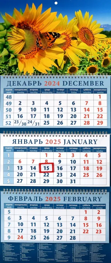 Если вы обнаружили ошибку в описании товара «Календарь квартальный на 2025 год Подсолнухи», то выделите её мышкой и нажмите Ctrl+Enter. Спасибо, что помогаете нам стать лучше!
