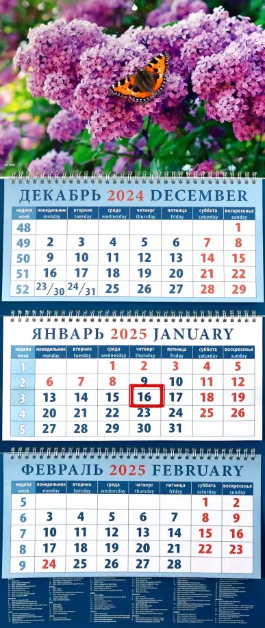 Календарь квартальный на 2025 год Бабочка на сирени