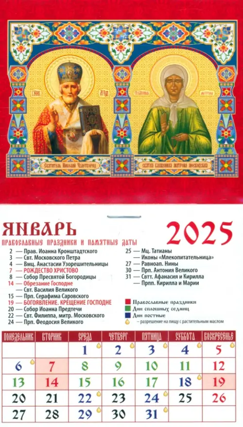 Если вы обнаружили ошибку в описании товара «Календарь на магните на 2025 год Святитель Николай Чудотворец», то выделите её мышкой и нажмите Ctrl+Enter. Спасибо, что помогаете нам стать лучше!