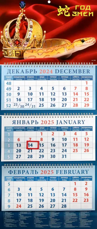 Если вы обнаружили ошибку в описании товара «Календарь квартальный на 2025 год Год змеи», то выделите её мышкой и нажмите Ctrl+Enter. Спасибо, что помогаете нам стать лучше!
