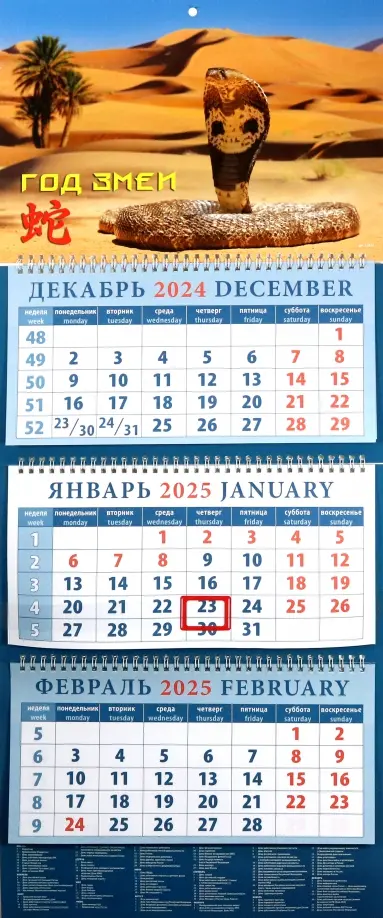 Календарь квартальный на 2025 год Год змеи