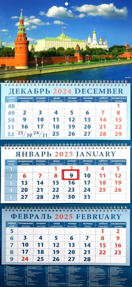 Календарь квартальный на 2025 год Вид на Кремлевскую набережную